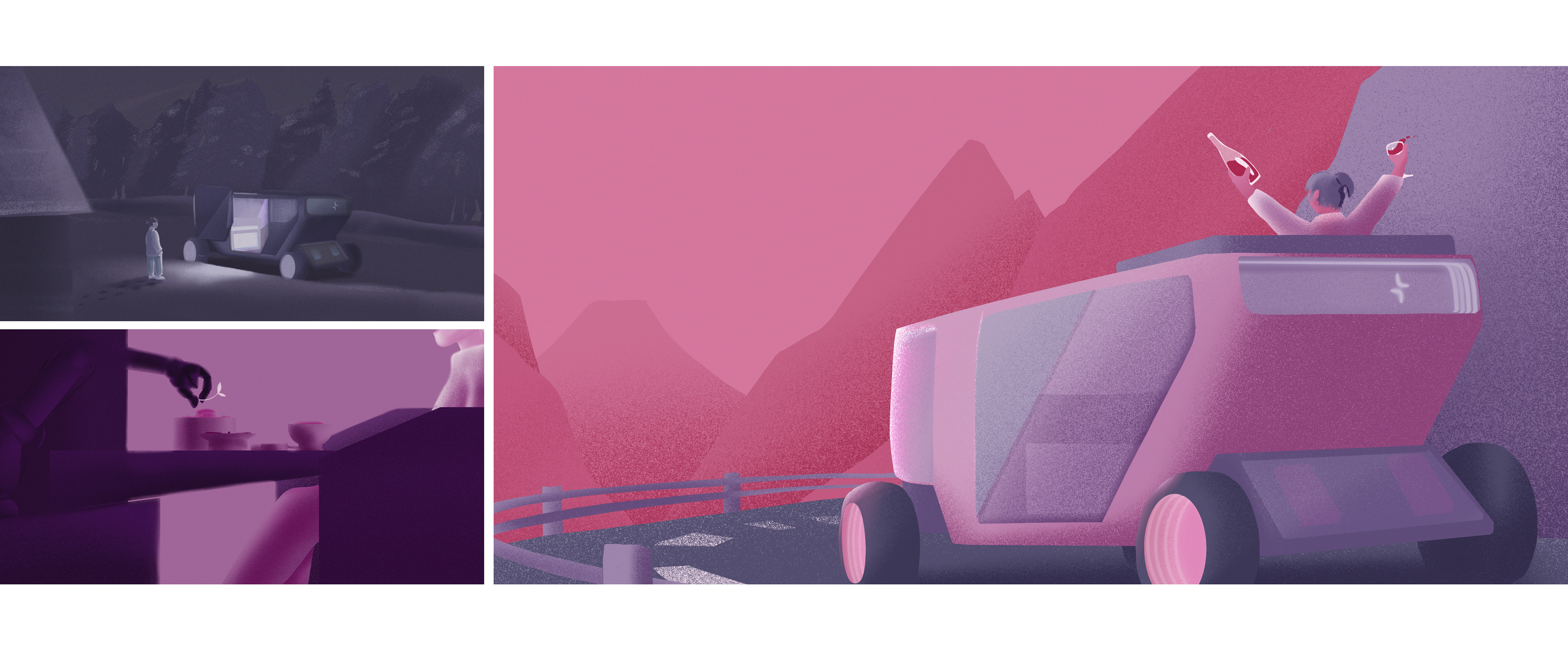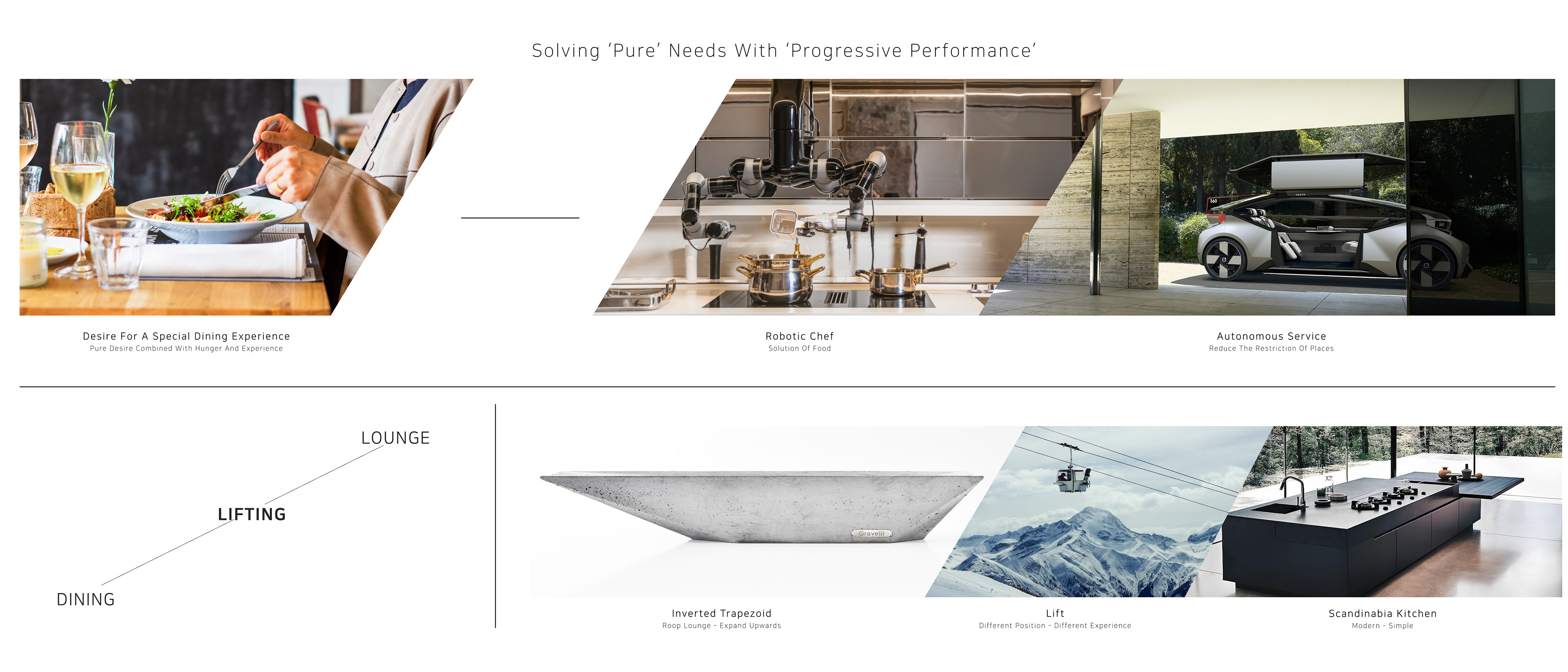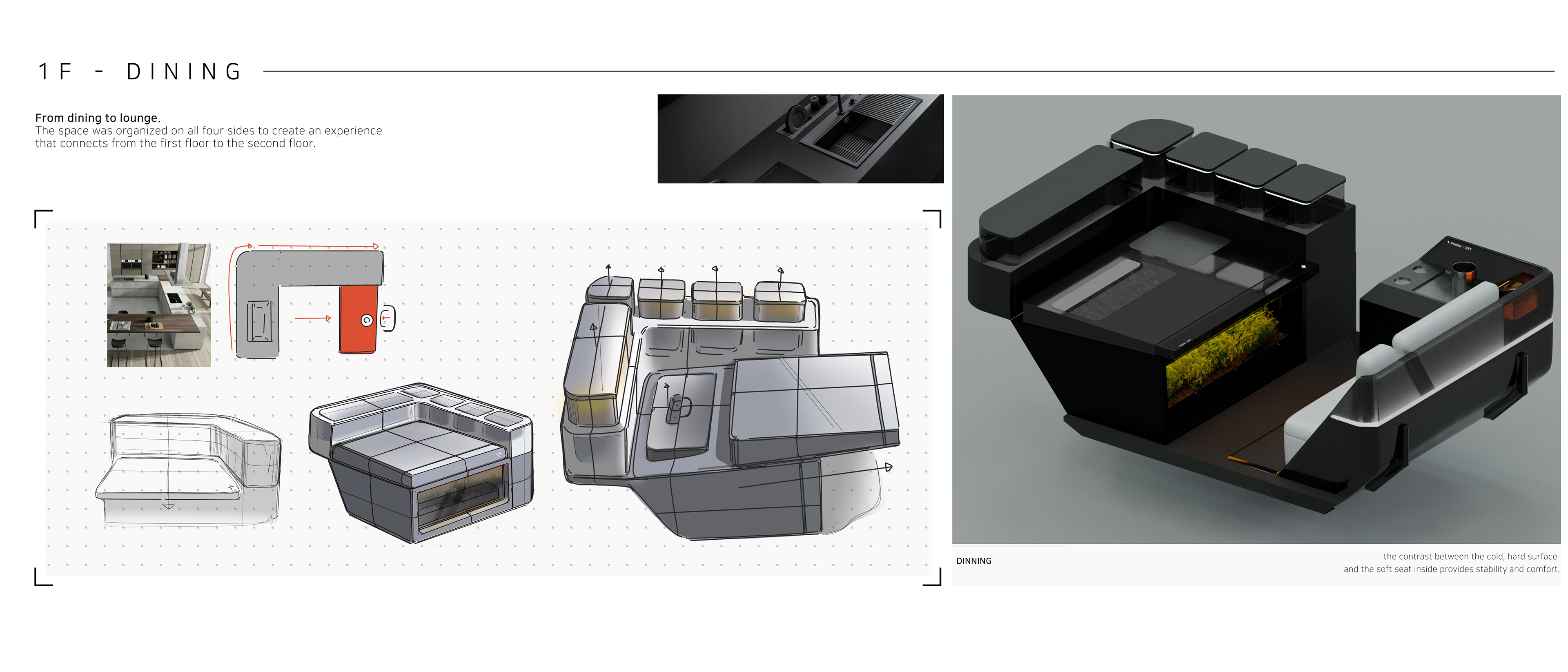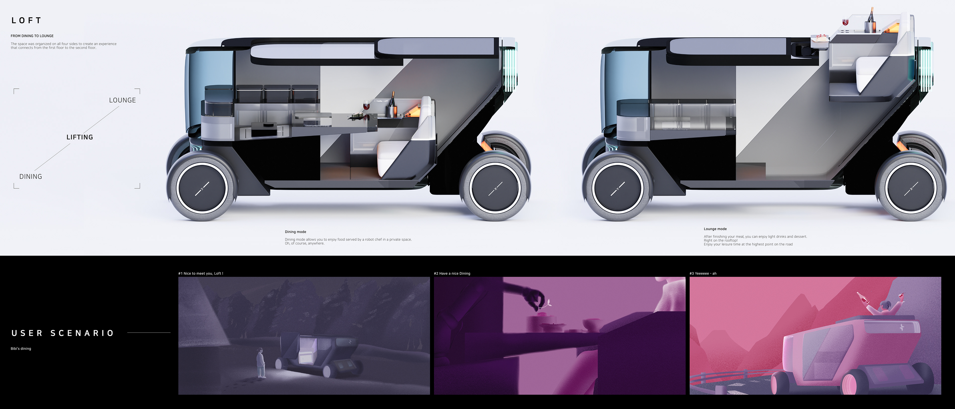 2021 Polestar design contest Shortlisted Mobility combined with robot chef technology provides users with a new experience through changes in dining mode and lounge mode.